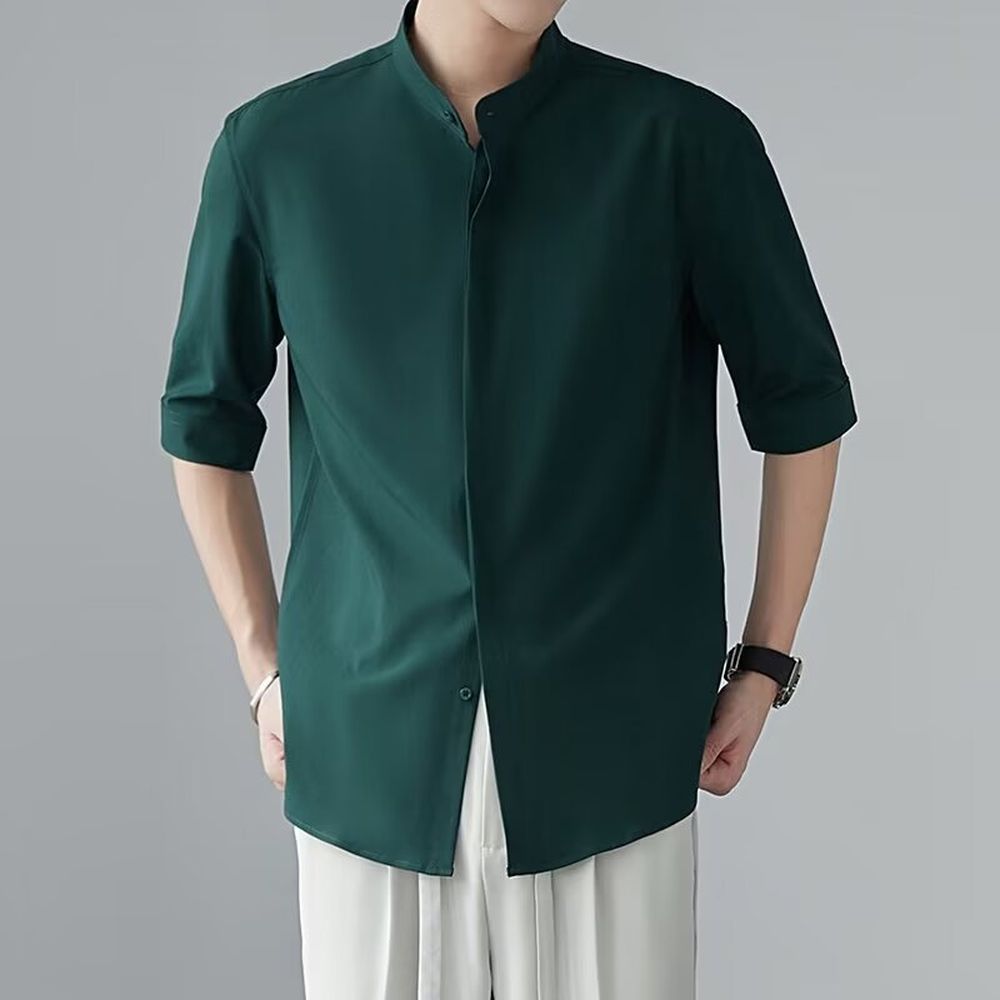 Men's Ice Silk Short Sleeve Shirt with Stand Collar