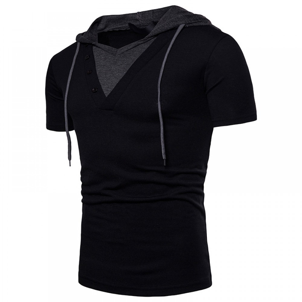 New Design Men's European Size Hooded Short-Sleeved T-Shirt