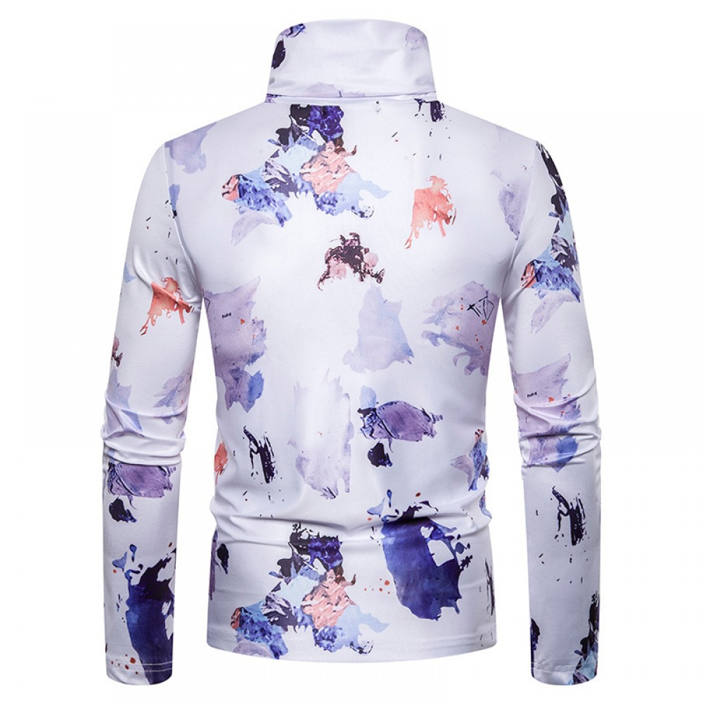 New Men's Large Size 3D Ink Printing High Neck Long Sleeve T-Shirt Bottoming Shirt