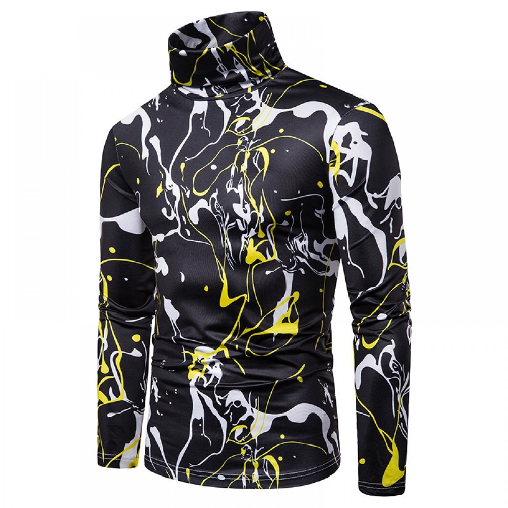 New Men's Plus Size 3D Irregular Printing High Neck Long Sleeve T-Shirt Bottoming Shirt