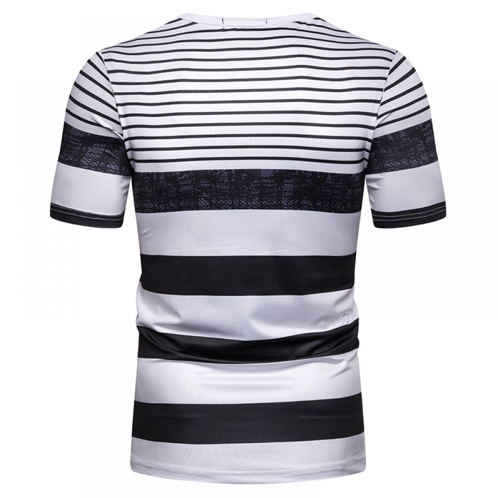 New Summer Men's Short-Sleeved T-Shirt Men's Contrast Striped Slim Casual T-Shirt