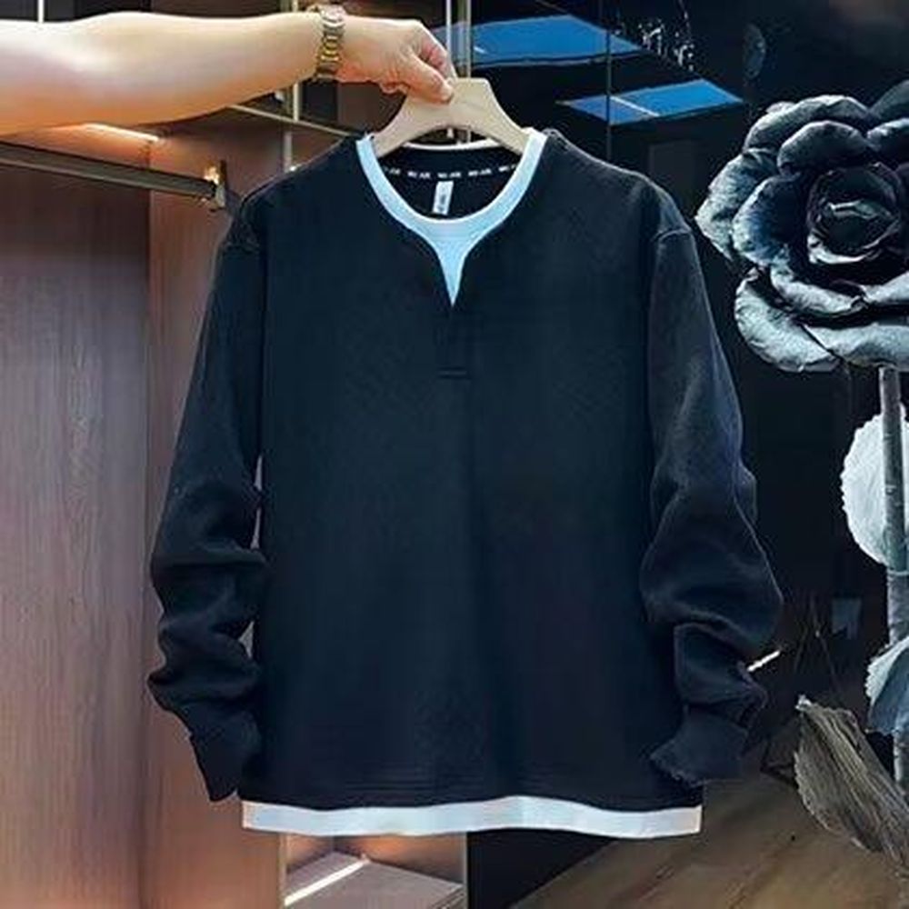 Solid Color V-neck Sweatshirt for Men Simple Casual Top Hoodie