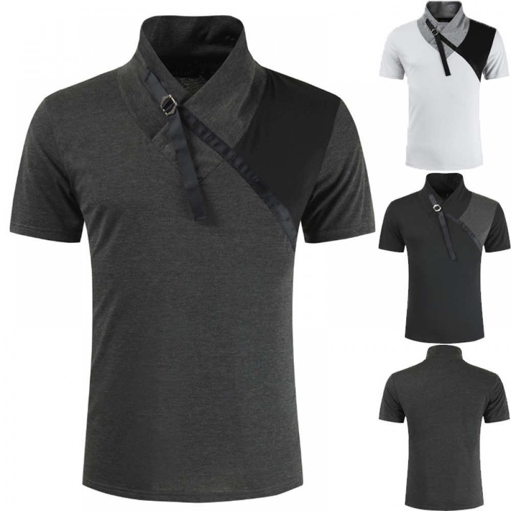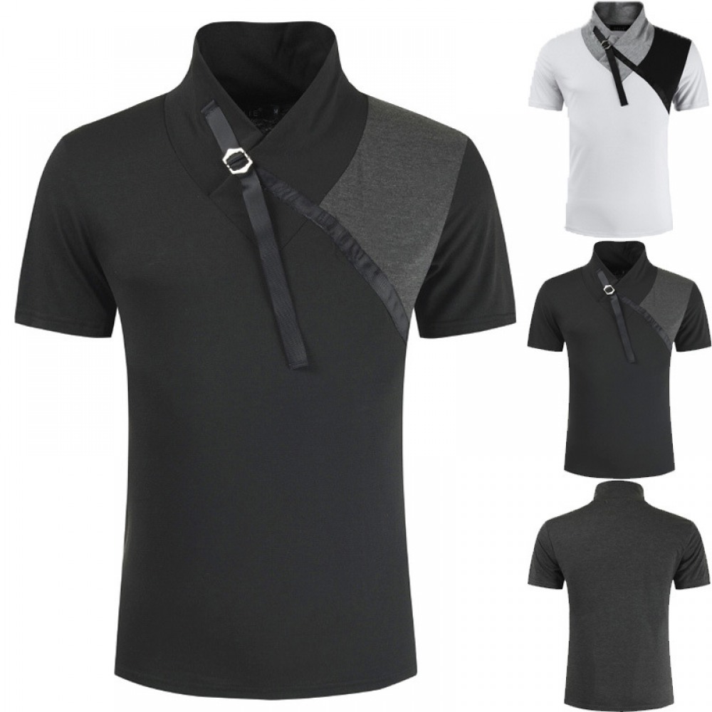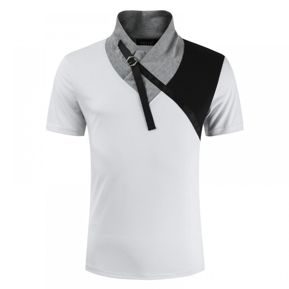 New Arrivals Short-Sleeved Stitching Color Matching Collar Men's Bottoming Shirt T-Shirt