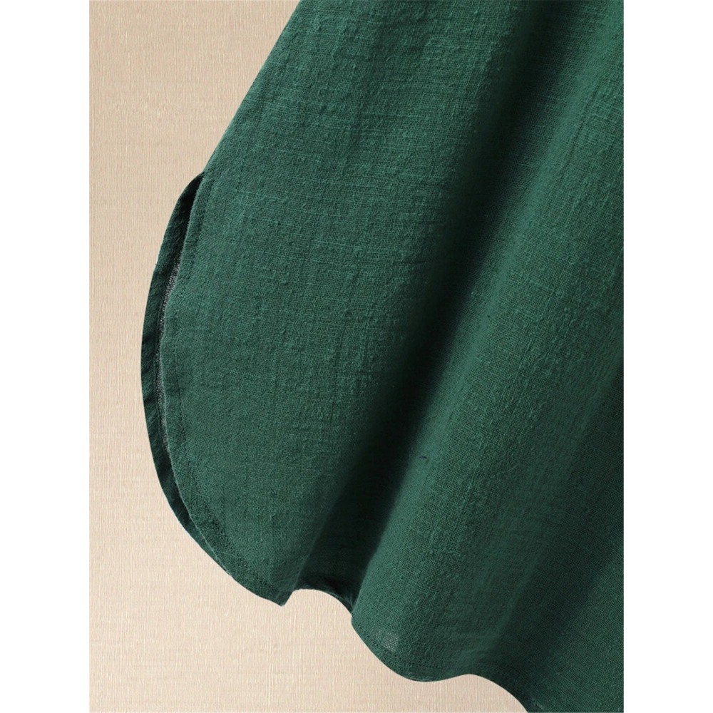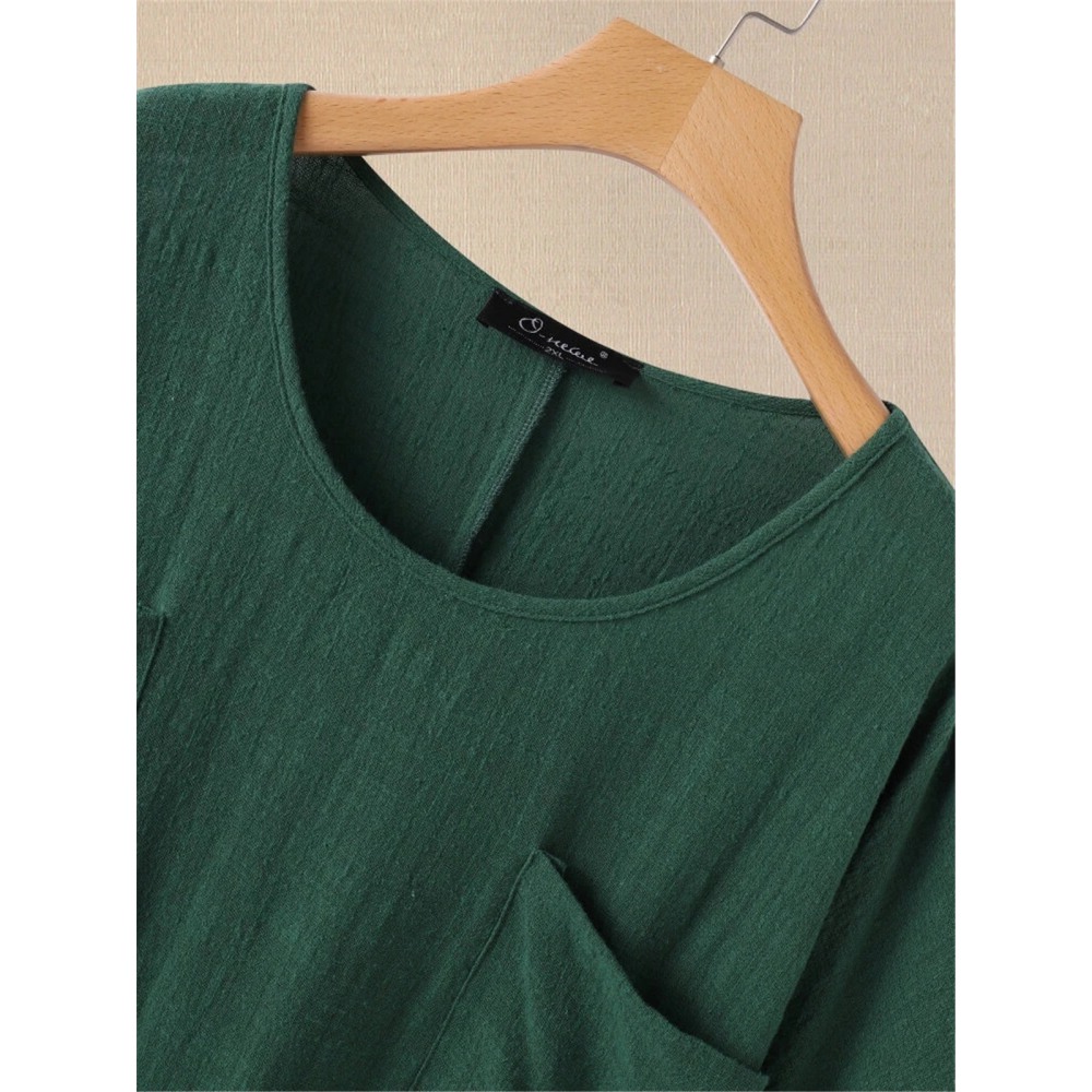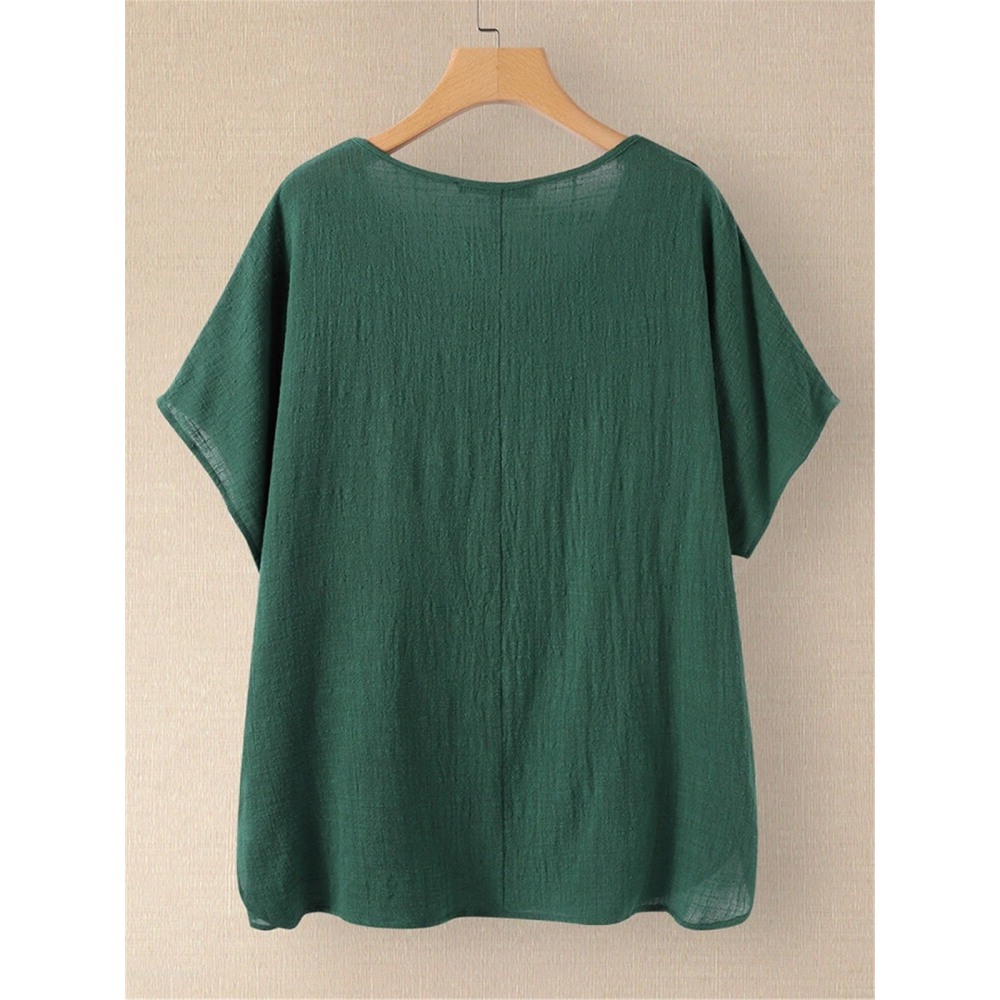 Summer New Style Cotton and Linen Short-Sleeved Shirt Hot Style Bundle Fold Mid-Sleeved T-Shirt Women